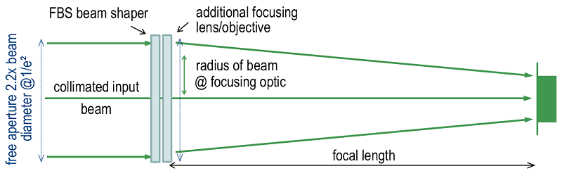 在扩束器前面的光束路径中引入FBS光束匀化器也有可能,这导致更高的数值孔径的聚焦光束和更小的顶帽轮廓。