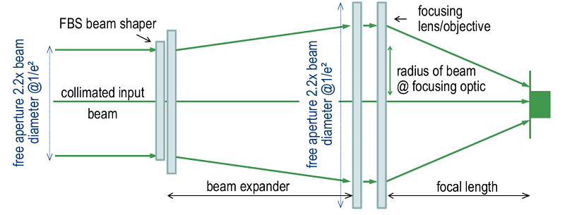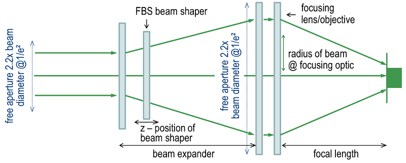 另一种更灵活的可能性是在扩束器内的光束路径中引入FBS光束匀化镜。您可以通过沿z轴移动光束匀化镜,在FBS平顶光束整形器位置轻松“微调”光束直径。