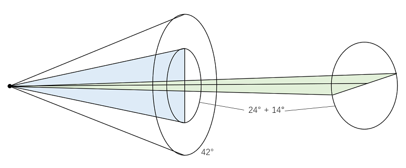42°:10毫米(0.39英寸), 24°:17毫米(0.67英寸) |