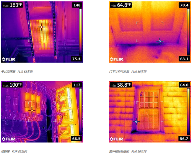 快速测温工具。E4及以上系列产品具有屏幕中心点测温特性,可用于测量温度。E5、E6和E8系列产品还能为您提供方框区域工具,可自动确定冷热点,直至捕捉到温度限值。E6和E8系列产品还配有一个低于限值显示蓝色,高于限值显示红色的彩色报警装置,快速提示您存在热点问题。