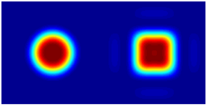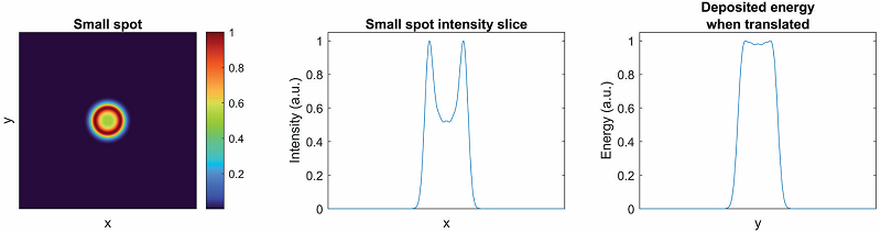 输出轮廓(强度分布:高斯光束产生高斯形能量沉积,DEFT环形输出产生平顶能量沉积)