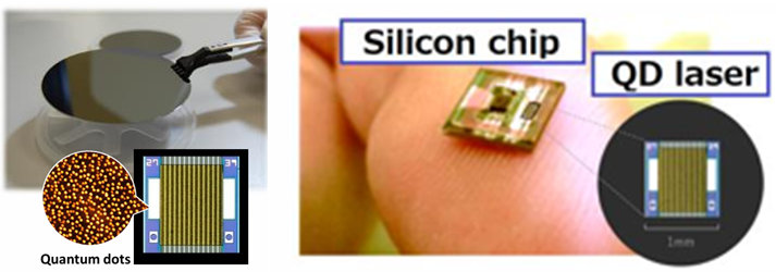 图:硅芯片与量子点激光器/QD Laser激光图示