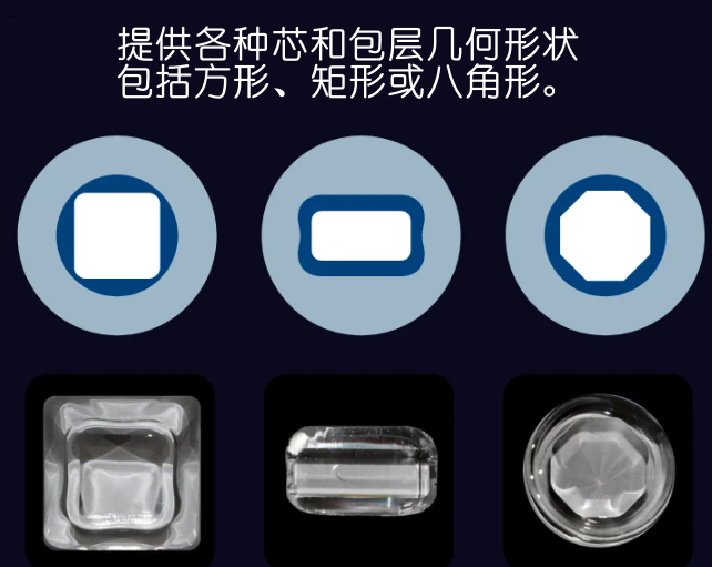-广泛的芯和包层几何形状(例如方形、矩形或八角形)