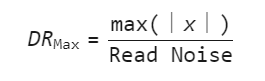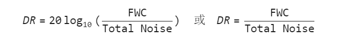 动态范围通常定义为 满井容量(Full Well Capacity, FWC) 与 总噪声(Total Noise) 的比值,单位为分贝(dB)或线性比例。公式如下: