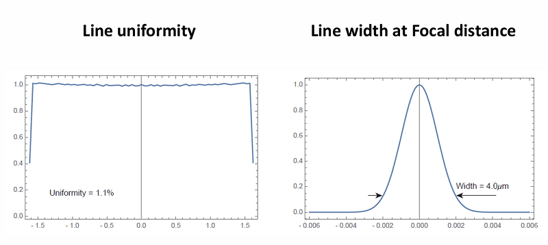 均匀性好。Powell透镜通常用于许多线发生器模块。Powell透镜的形状通常使用多项式的二次近似值来确定。Powell透镜中使用的技术倾向于在两端产生强烈的光束分布,如果试图通过抑制端部强度来平衡光束,则会在中心产生凹陷)。正如人们所看到的,由于近似,理论上不可能使用Powell透镜创建完全均匀的线。除了这一理论,还有其他负面因素需要考虑,如激光束角度和透镜形状的不一致性。