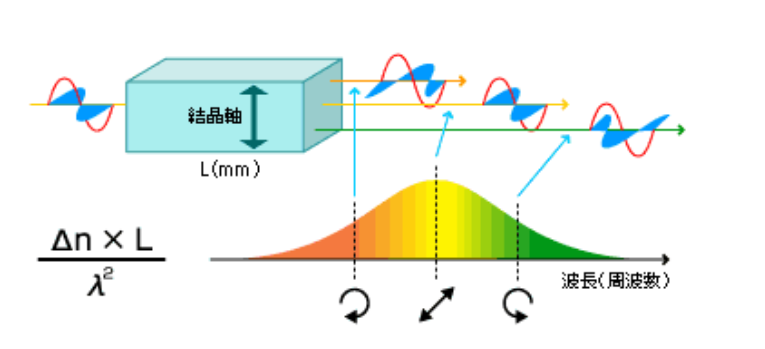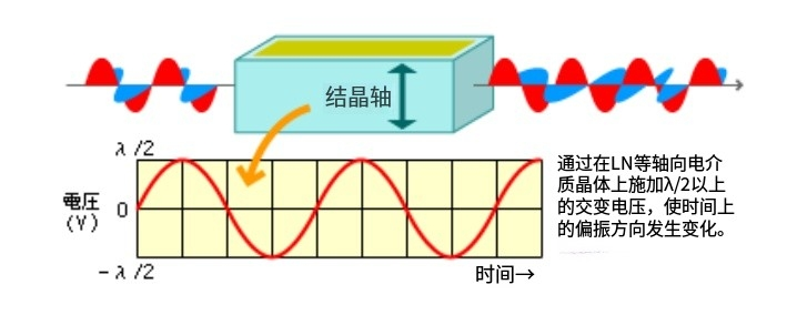 石英旋光片相位调制:由于楔形晶体的厚度差异导致通过不同位置的光束产生相位延迟(偏振波时序差)