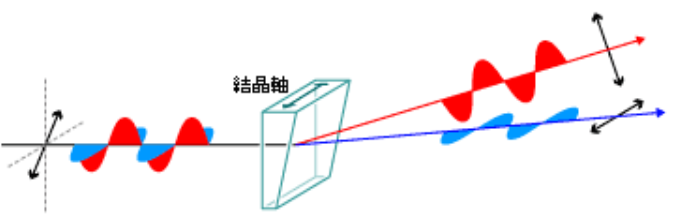 光束分裂:当与晶体光轴呈45°夹角的线偏振光入射时,会像沃拉斯顿棱镜一样分裂为两束存在夹角的光束