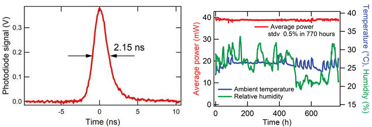 图:Ivy在1GHz 检测带宽下测得的典型脉冲和在非受控环境中1个月内的稳定性