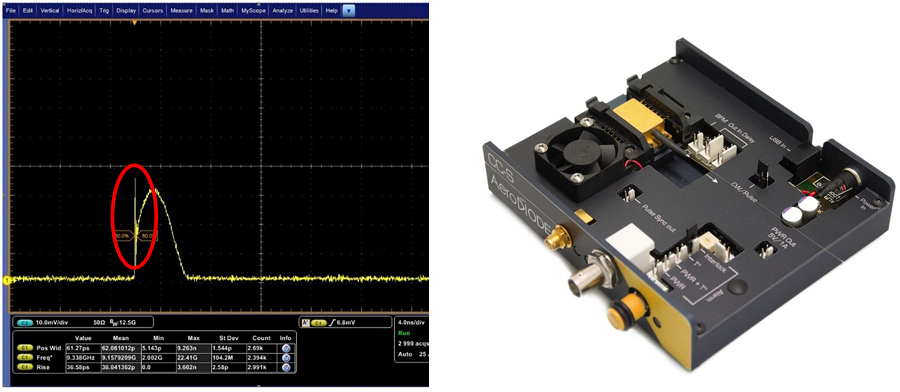 AeroDIODE Shaper board:这款脉冲整形器旨在解决前述脉冲驱动中的诸多问题。脉冲整形器能对脉冲形状进行预补偿,并具备特殊的增益开关抑制能力。脉冲整形器内置AWG的数据点间隔为500ps,动态范围达48dB,可生成极短脉宽的可调脉冲,并配有3路脉冲延迟发生器输出。