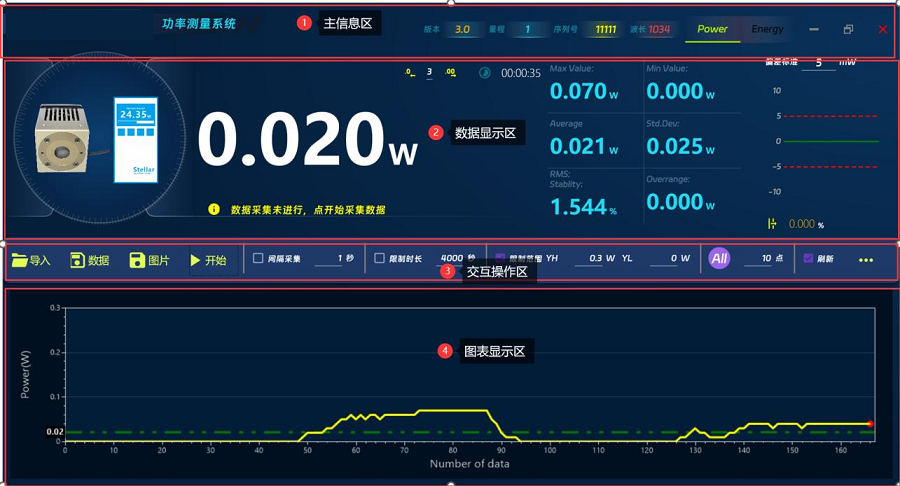 4、图表显示区:开始采集数据后,显示实时的图形,直观显示功率或能量起伏情况。