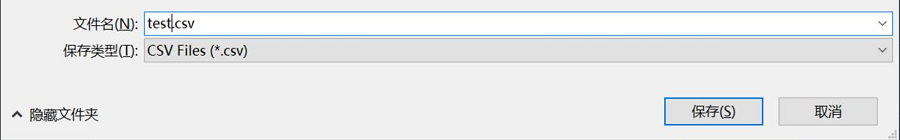 保存数据:如图10采集停止后,可把采集到图数据以.csv格式保存到指定位置,数据一般用Excel等类似的工具打开,如图11。