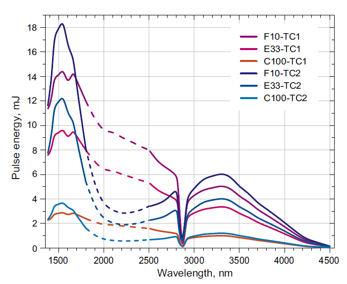 指 3300 nm 处的脉冲能量。其他波长的典型脉冲能量请参见调谐曲线。