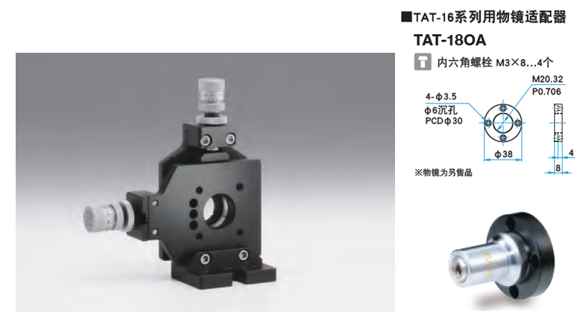 Optosigma物镜镜架适配器及十字调节镜架TAT外形图