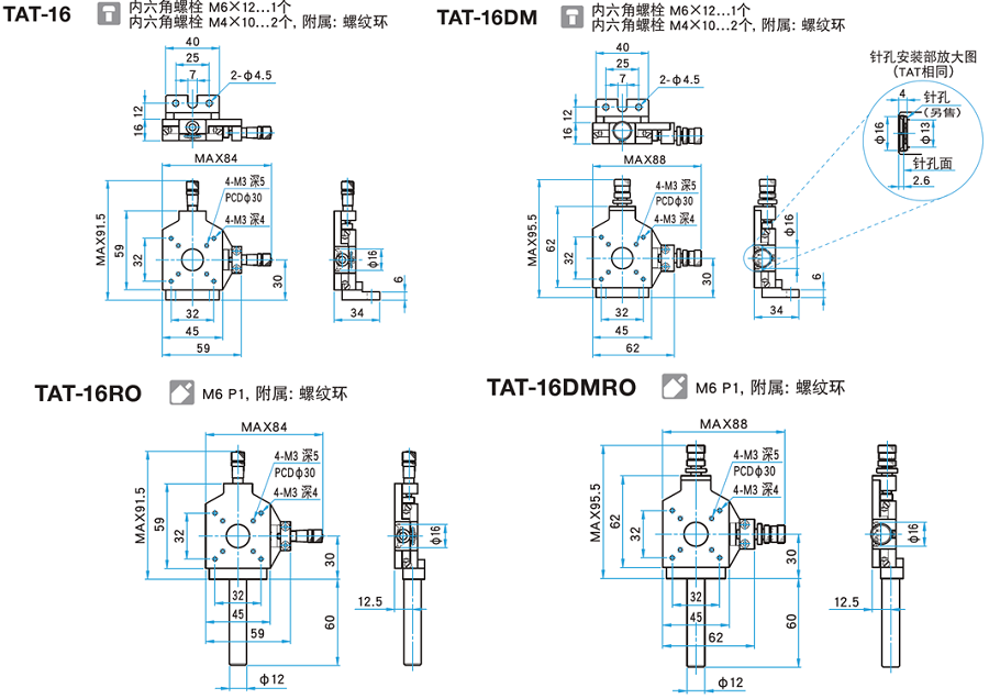 十字调节镜架不附带针孔。请在购买十字调节镜架的同时,别忘了选购针孔。十字调节镜架附带固定针孔的螺纹环,不必另外准备针孔适配器。TAT-16,TAT-16DM型十字调节镜架不附带立柱。如需要立柱,请选择TAT-16RO,TAT-16DMRO型十字调节镜架。