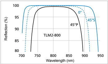 -宽带高反射:例如TLMB飞秒激光反射镜系列在740-860nm范围内实现 R>99.0%,完美覆盖Ti:Sapphire激光器的调谐范围。