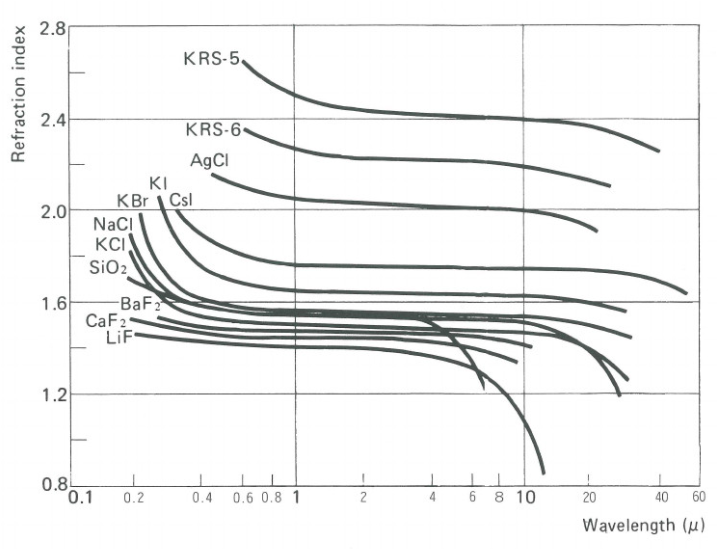 CsI 具有吸湿性的缺点,但可透射高达 70μm 的红外线。它可用作红外的棱镜或窗片。