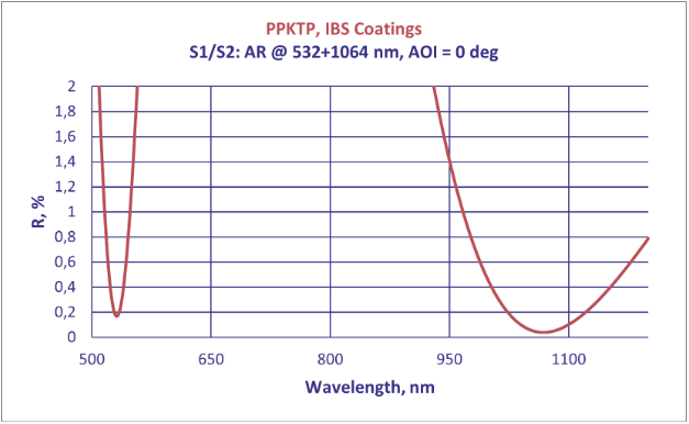 S1/S2面:1064nm增透(R<0.1%)+532nm增透(R<0.5%),0度入射