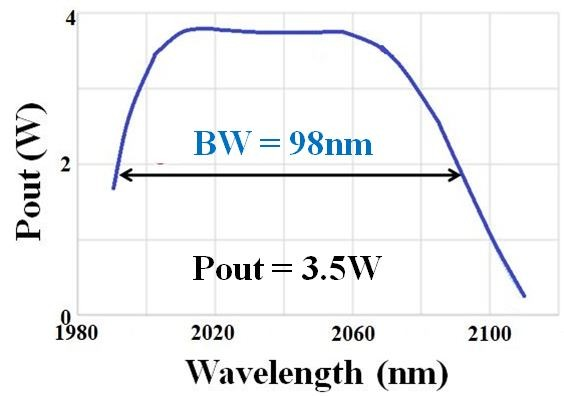 HELIOS高功率光纤放大器能在从大约1980nm到2080nm的宽达98nm的波长范围内,都保持较高且稳定的3.5W功率输出。具有宽带宽的特性。