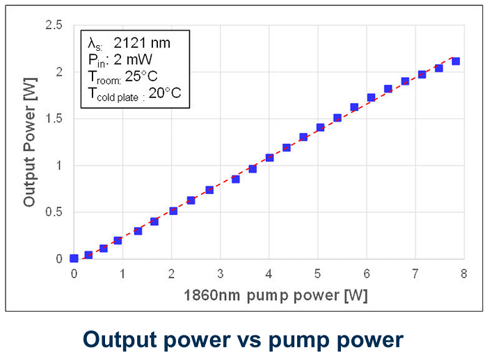 氢气检测光纤放大器CALIPSO放大器的输出功率随泵浦功率变化的关系曲线。它直观地表现了为达到特定输出功率所需的泵浦功率水平,反映了掺钬光纤激光放大器的能量转换效率。