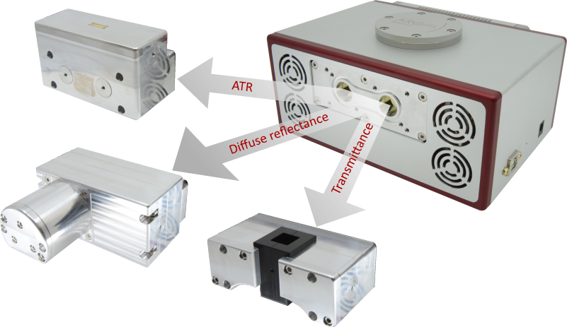 漫反射模块能够在整个所选探测器提供的整个光谱范围内表征反射率低的样品,同时同时阻挡镜面反射。与光纤解决方案不同,这种配置可以让ARCoptix的FTIR系列傅里叶变换红外光谱仪在几秒钟内收集来自样品反射的高质量的光谱,并且高端的反射镜和光源使得获得的信息具有出色的信噪比。