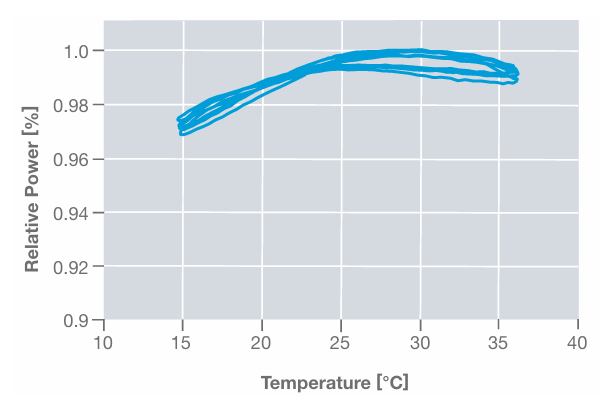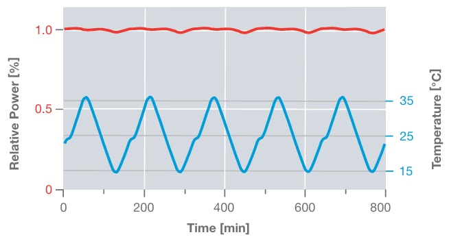 图3:相对功率呈现出跟随温度变化的重复模式,最大偏差为±1.5%。