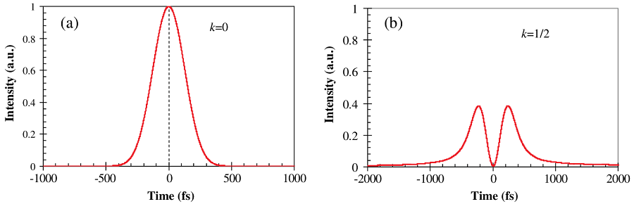 图7:脉冲经双通道CBG展宽与再压缩后的时域曲线: