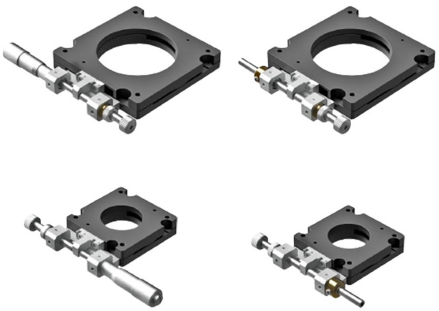 Optosigma除了KSPT系列超薄θ轴中空微调转动平台以外,还可以提供平台厚度为10mm的超薄X轴TSD平台。KSPT系列旋转调整台采用对向锁紧方式。型号末尾为FP的产品,采用的是精密调整螺杆。需要注意的是,采用的不是一般的微分头,精密调整螺杆的螺距为0.25mm,在操作时请使用六角扳手或另售的六角手轮扳手(KCL)。除此之外,安装在垂直面使用时,请一定把微分头朝向下方安装。否则,结构上举鼎其载荷将有内部弹簧负担而无法正确定位。