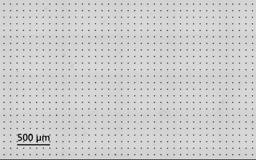 玻璃通孔(Through Glass Via,简称TGV)是三维封装技术中的核心工艺之一,其原理是在玻璃基板上加工微尺度孔道并填充导电金属,从而实现垂直方向的电气互连。通俗地讲,TGV就如同在玻璃基板内部搭建起一座座微型“金属通道”,使电信号能够在基板两侧之间高效传输。在半导体制造领域,如何在玻璃基板中形成高质量、高纵横比的孔结构,正逐渐成为重要的研究与应用方向。采用FemtoLux飞秒激光器,可在玻璃材料中加工出低锥度、高深宽比的TGV或玻璃盲孔,其加工效果表现为剥落少、无裂纹且孔壁光滑,整体质量优异。