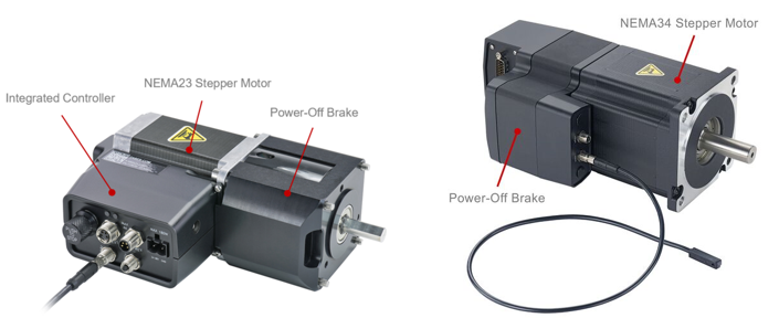 带zaber电磁制动器的NMS23步进电机(左)和NMS24步进电机(右)