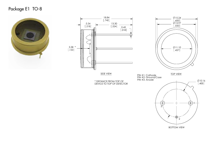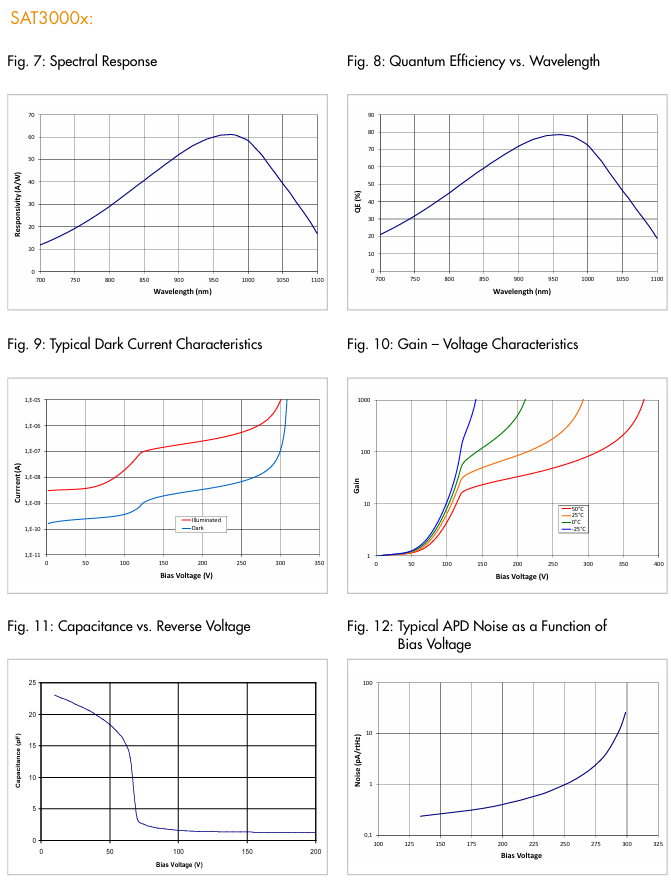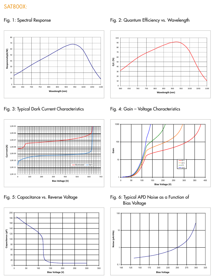 德国Laser Components推出的SAT系列APD专门针对1.06 μm波段的光探测需求进行了优化设计。在1064nm波长处,其探测效率相比常规APD提升约2~3倍,量子效率可超过38%,同时具备低暗电流特性以及适合低噪声应用的优良电容性能。SAT系列采用“穿透式”结构设计,实现了更高的量子效率和更快的响应速度,是针对1064nm波段优化的硅雪崩光电二极管产品。该系列器件采用改进型TO-8 / TO-5金属密封封装,兼顾可靠性与稳定性,适用于对性能要求严苛的光电探测应用。