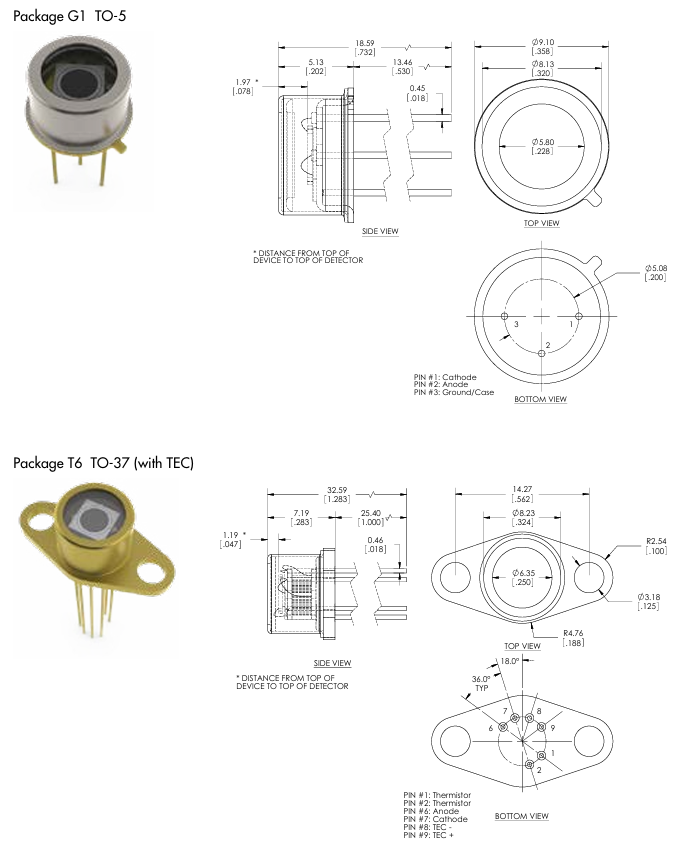 同时该Nd:YAG增强型APD系列同时提供配备热电制冷器的金属密封TO-37封装型号,使其能够胜任激光雷达与医疗领域等严苛应用场景。该硅雪崩光电二极管/1064nm优化APD提供800微米和3000微米两种有效感光区域尺寸,配备多种封装配置,包括集成热电制冷器、光纤适配器以及带尾纤等多种型号。