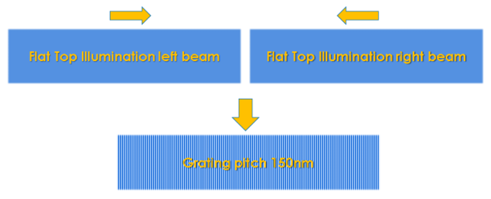 中国研究人员近期展示了一种经济高效且灵活的加工方法:使用由我们的PT-064-W-Y-A光束整形器生成的平顶深紫外激光进行照明,可在大面积上刻写密集光栅。文章表明,通过干涉平顶整形光斑,能够在10毫米的曝光区域内刻写周期达150纳米的密集光栅,从而实现大面积快速图形化。