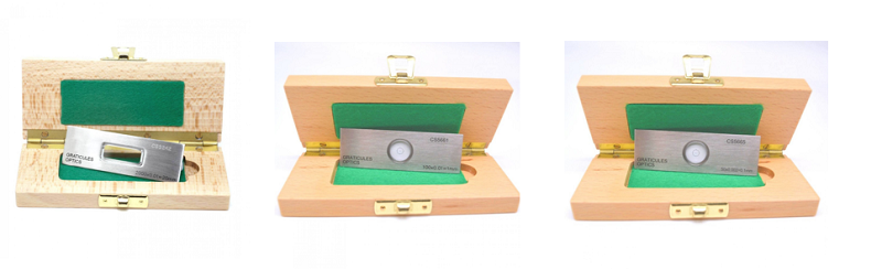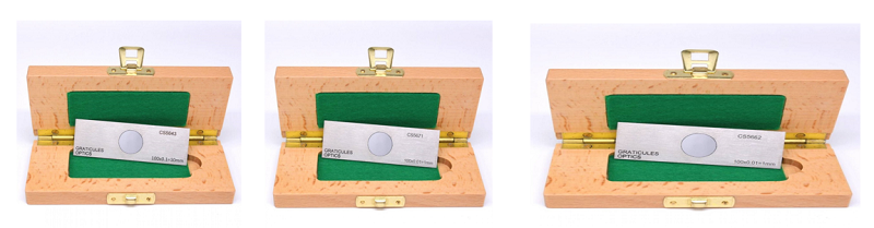 图1:用于透射光的镜台测微尺(从左到右型号依次为PS1、PS8、PS12)