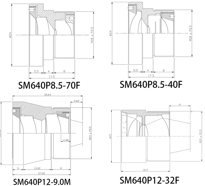 SOMO IR,640x480红外非球面镜头SM640P12,SM640P17参数列表: