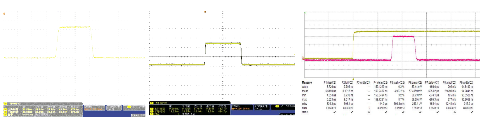 图:(1)光脉冲上升时间40ns (2)光脉冲上升时间10ns (3)光脉冲上升时间6ns