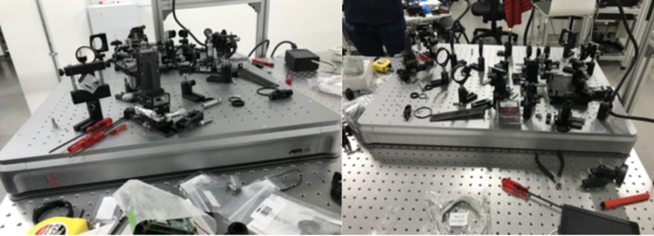 KNS-systems的Aris TT隔振台采用紧凑化设计,相较于传统隔振设备体积大,占用空间大,在多模块光路搭建中易导致布局拥挤的缺点,桌面式的主动隔震台最大体积仅为600x800x80mm,就可轻松负载80-200kg,最小体积450x300x80mm,可有效提升实验室空间利用率。K&S隔震台采用一体化集成设计,大幅降低了安装门槛,普通实验人员经简单培训后即可独立完成安装。东京大学实验室人员直接将Aris TT隔振台放置在光学平台上,自动完成水平校准。K&S隔震台可提供面包板选件的,可在主动隔震台上面直接安装面包板,有利于实验人员直接将光学组件稳固固定在工作面。最后通过配套简易触控控制系统完成参数初始化,完成K&S主动隔振台的调试。在东京大学光路测试实验中,借助K&S隔震台的便捷安装特性,光路搭建的准备周期得到缩减,大幅加快了实验项目的推进进度。