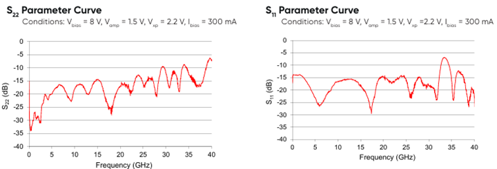 该电光调制射频驱动器的特点是具有低噪声系数和线性传输函数,其1dB压缩点高于17dBm。它在整个带宽内展现出平坦的群延迟和增益曲线,且纹波较低。