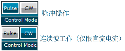 - 偏移参数(仅脉冲模式)或直流参数(仅连续波模式)用于配置直流电流(脉冲模式中的偏移);