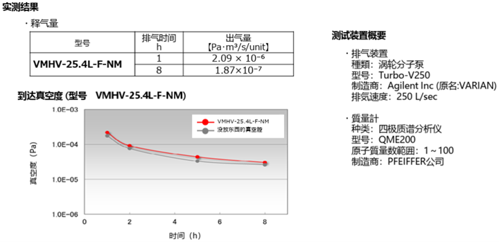 VMHV系列真空用镜架真空参考数据(到达真空度・释气量):
