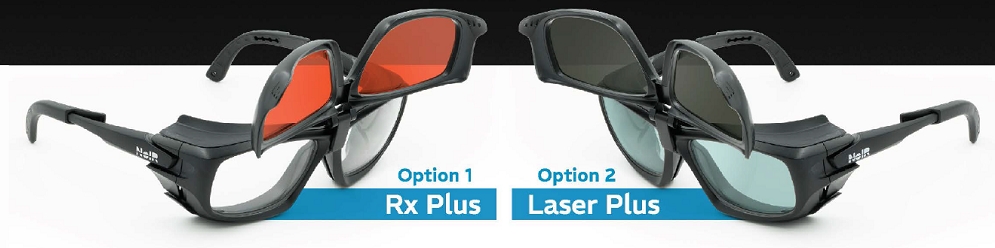 NOIR每年设计开发各种舒适和实用的激光防护眼镜镜架,2025年,NOIR提供最新的叠加翻盖式镜架1+1和轻便的#43镜框。