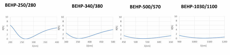 高功率用激光扩束镜型号最后一列代表着波长,每种型号都有四个波段,比如扩束倍率选择1.5倍,如果选择250-280nm,型号就变成BEHP-1.5-250/280;选择340/380,型号就是BEHP-1.5-340/380;选择500/700,型号就是BEHP-1.5-500/700;选择1030/1100,型号就是BEHP-1.5-1030/1100。其他的型号也就是一样,选择哪个波段,就在对应的型号后面加上波段。