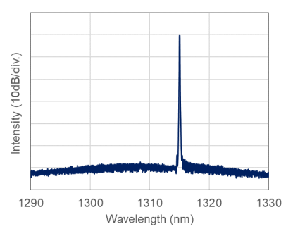 图4展示了85°C时的激光光谱,其中副模抑制比(显示光输出功率稳定性的指标)大于50dB。这表明量子点DFB激光器在高温下以低噪声运行。