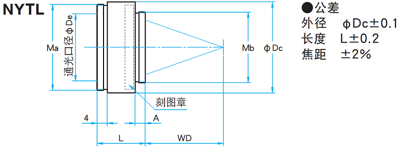 西格玛光机YAG激光用聚光透镜NYDL/NYTL外形图