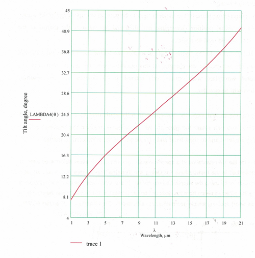 Alphalas的远红外相位延迟片PO-TWP-L4-25-FIR可在1-19μm范围内调谐,因此也被称为1-19μm宽带可调谐波片。PO-TWP-L4-25-FIR的孔径为24mm,无镀膜,安装在特殊的倾斜/旋转支架中,如下图。这种结构的好处是可以通过调整角度来实现全波段范围内的四分之一相位延迟。