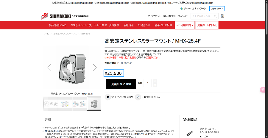西格玛光机的日文官网可以查询日元价格。浏览西格玛光机官网时,可能会发现中文页面和日文页面的产品规格参数存在差异。这是因为中文页面的更新速度滞后于日文页面。因此,确认西格玛光机产品规格参数时,请以日文页面的信息为准。
