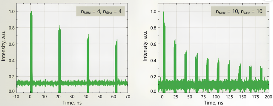 - Femtolux 30激光器可以运行单脉冲模式, MHz burst模式,GHz burst模式, 以及MHz+GHz burst混合模式