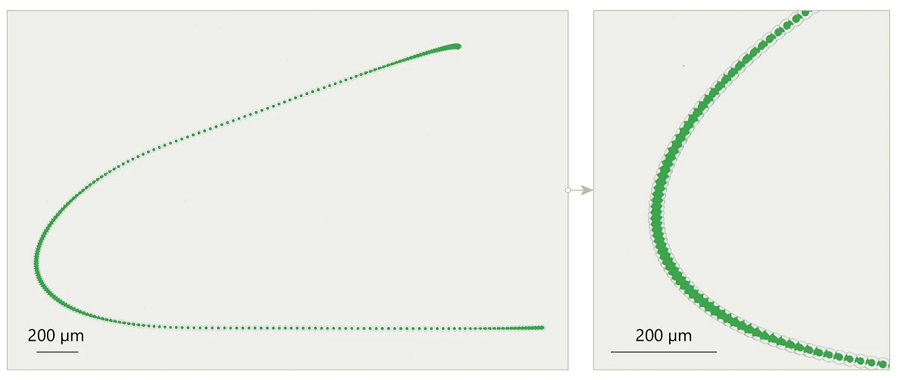 按需脉冲(PoD)功能使激光仅在需要时发射脉冲,而不是以恒定速率发射,从而实现对激光输出的精确控制,进而实现更高的效率、准确性和质量。这种功能在各类微加工应用中尤为重要,因为在这些应用中,高处理速度、恒定能量和准确性至关重要。为了在高速跟随复杂的曲率并保持等距间隔,必须确保精确调整脉冲的重复率。