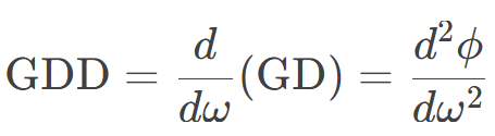 GDD(Group Delay Dispersion)是群延迟对频率的导数(或相位的二阶导数),描述群速度的色散,GDD可以通过对GD进行二次微分得到,即:
