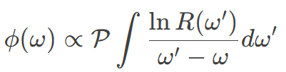 高色散反射镜,啁啾镜和GTI反射镜等的GD和GDD主要由其相位响应ϕ(ω)决定,而ϕ(ω)与反射率R(ω)通过Kramers-Kronig关系耦合: