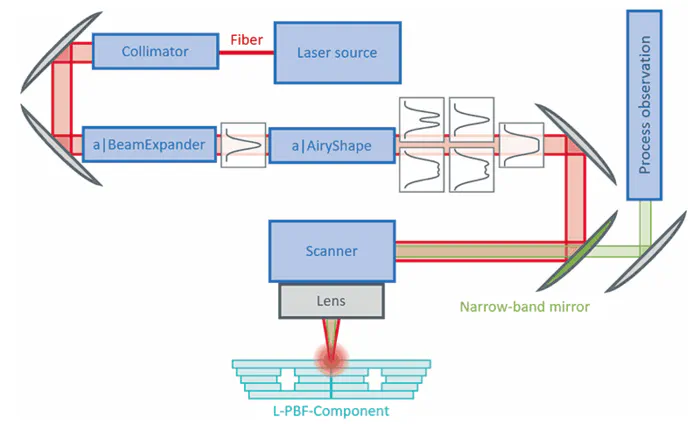 增材制造工艺越来越多地用于生产高度自动化的复杂部件。由于精确的激光束引导,它们能够实现分层、灵活的构建,例如二项式结构。混合工艺将传统制造的结构与使用激光焊接实现的增材制造所创建的精细结构相结合。例如,这种生产方式在耶拿使用。为了生产均匀的焊缝,在与asphericon密切合作下,使用了Asphericon BeamTuning产品来优化光束成形。